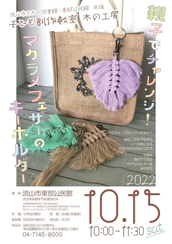 <子ども創作教室 木の工房> 親子でチャレンジ!マクラメフェザーのキーホルダー