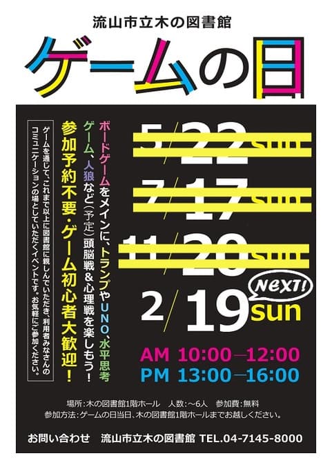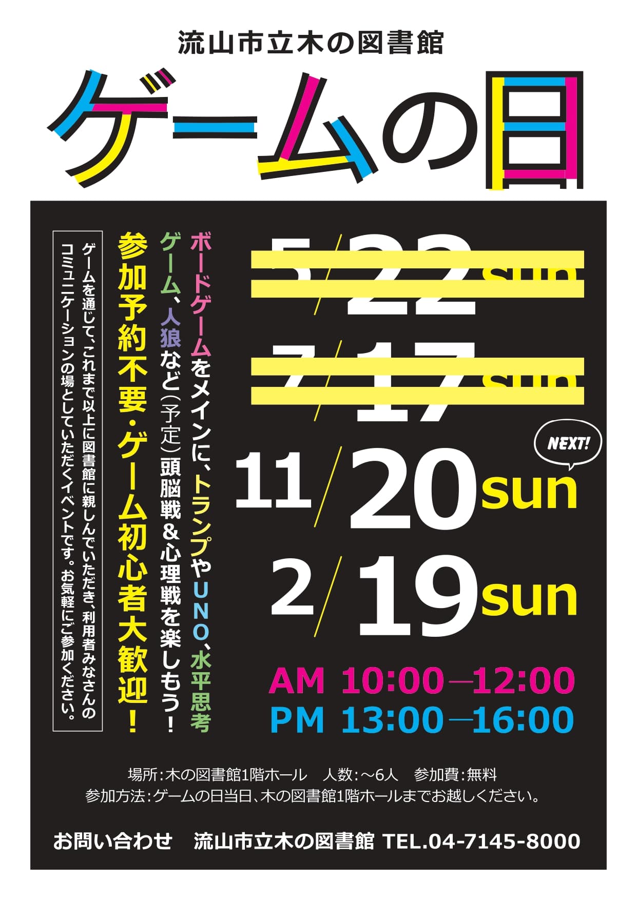 ※ゲームの日当日、木の図書館1階ホールまでお越しください。