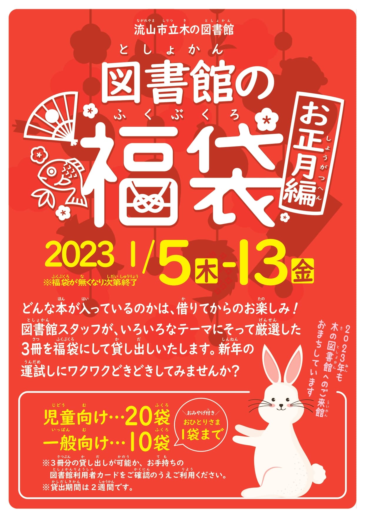 図書館スタッフが、いろいろなテーマにそって厳選した3冊を福袋にして貸し出しいたします。