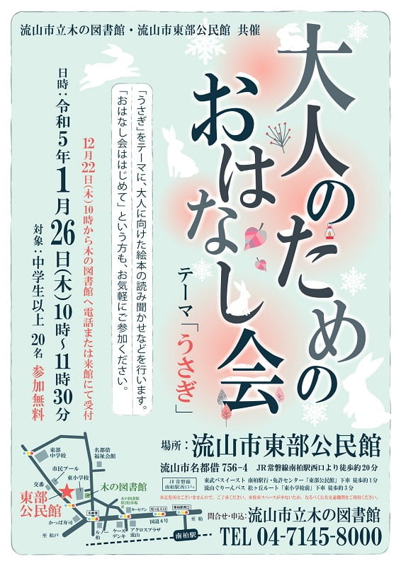 - 「うさぎ」をテーマに、大人に向けた絵本の読み聞かせなどを行います。