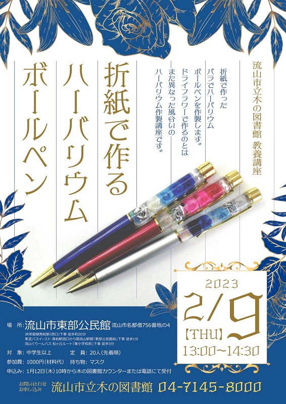 参加お申し込みは、1月12日(木)10時から電話(04-7145-8000)または直接窓口へ - 2023年2月9日(木)