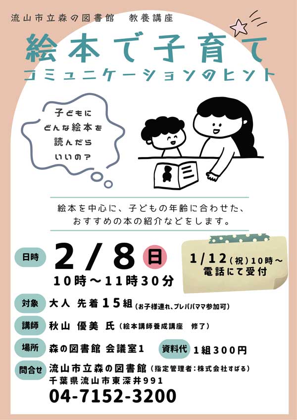 参加お申し込みは、1月12日(日)10時から電話(04-7152-3200)にて受付開始
