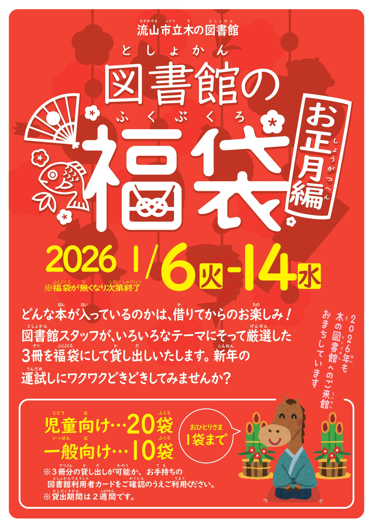 図書館スタッフが、色々なテーマにそって厳選した3冊を福袋にして貸出いたします。
