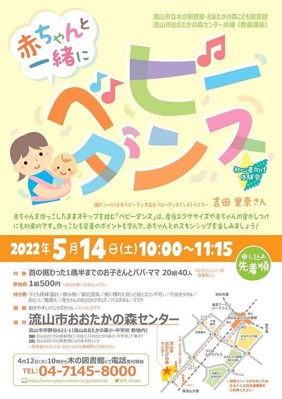 - 初心者向けのベビーダンス体験会です。抱っこひも装着のポイントも学んで、赤ちゃんとのスキンシップを楽しみましょう。
