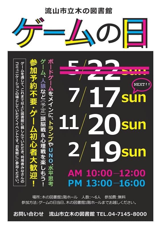 ※ゲームの日当日、木の図書館1階ホールまでお越しください。