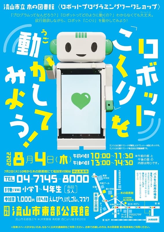 参加お申し込みは、7月2日(火)10時から木の図書館へ電話(04-7145-8000)にて受付 - 2022年8月4日(木)