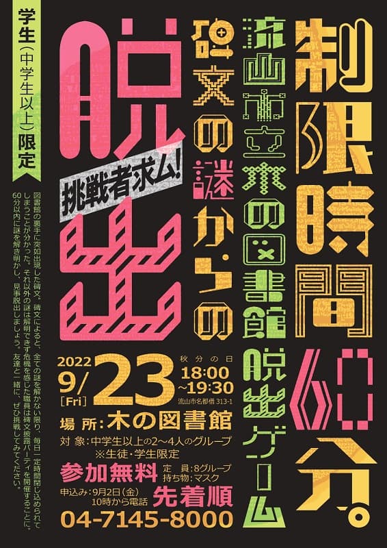 参加お申し込みは、9月2日(金)10時から電話(04-7145-8000)にて受付 - 2022年9月23日(金)